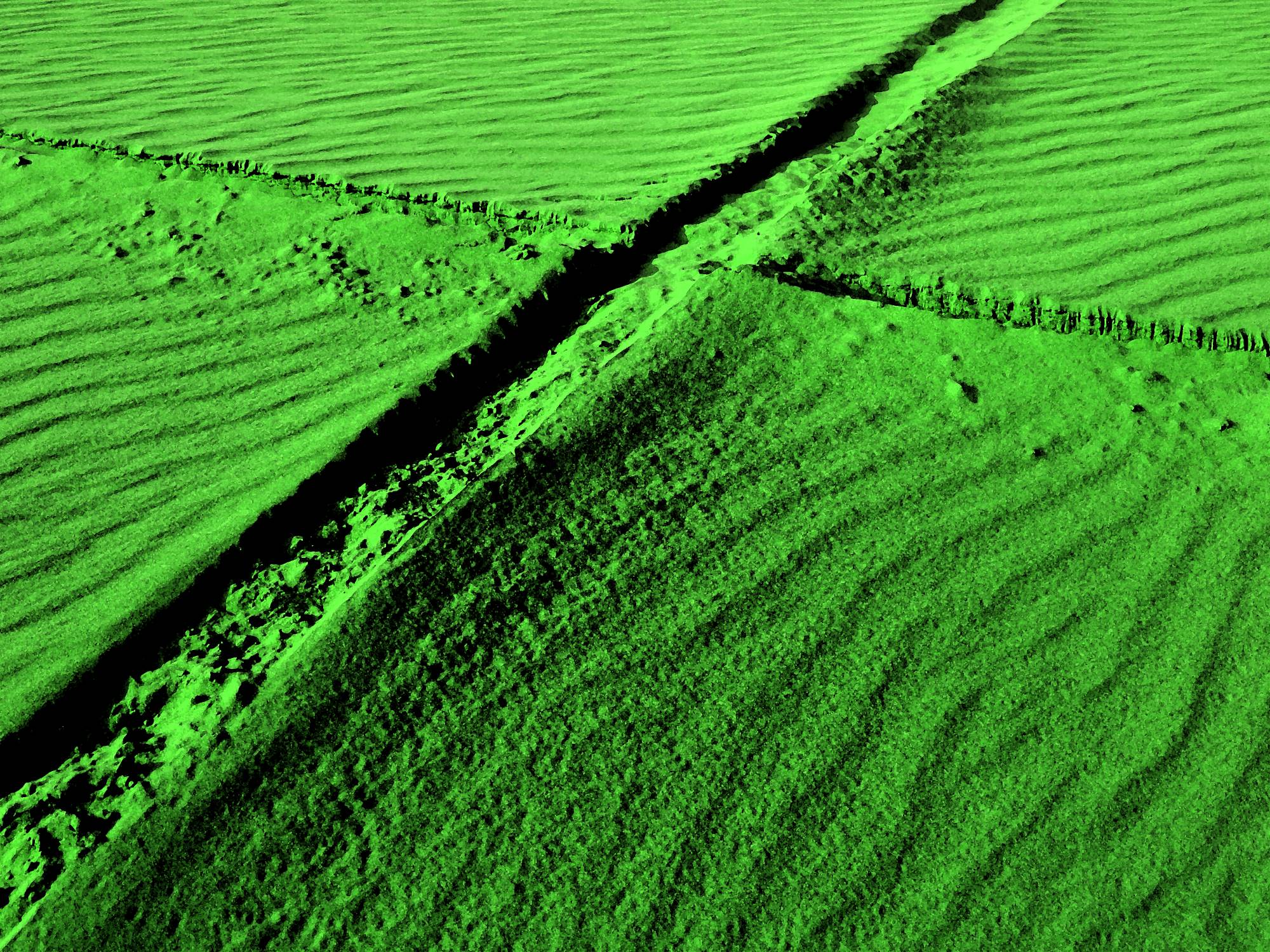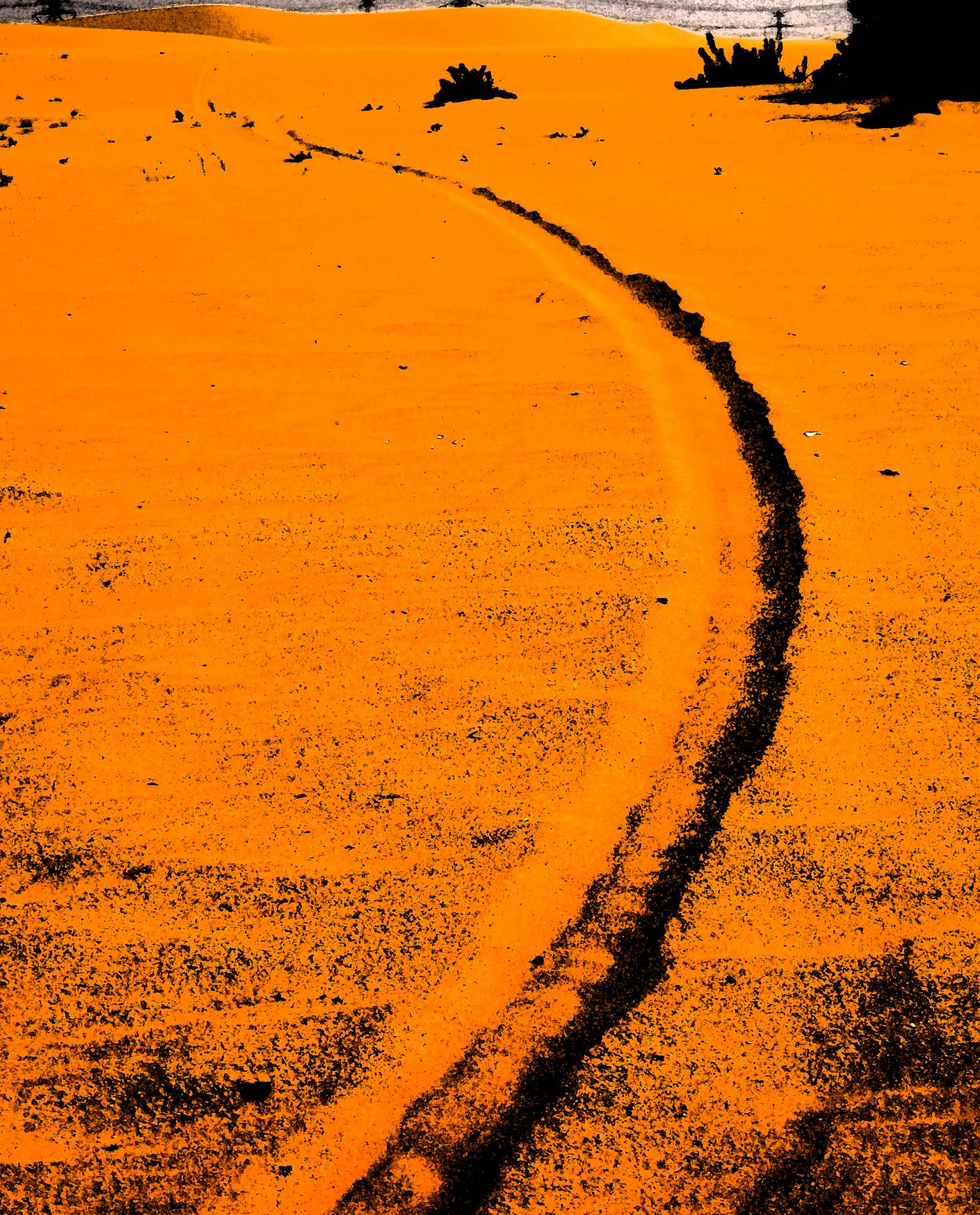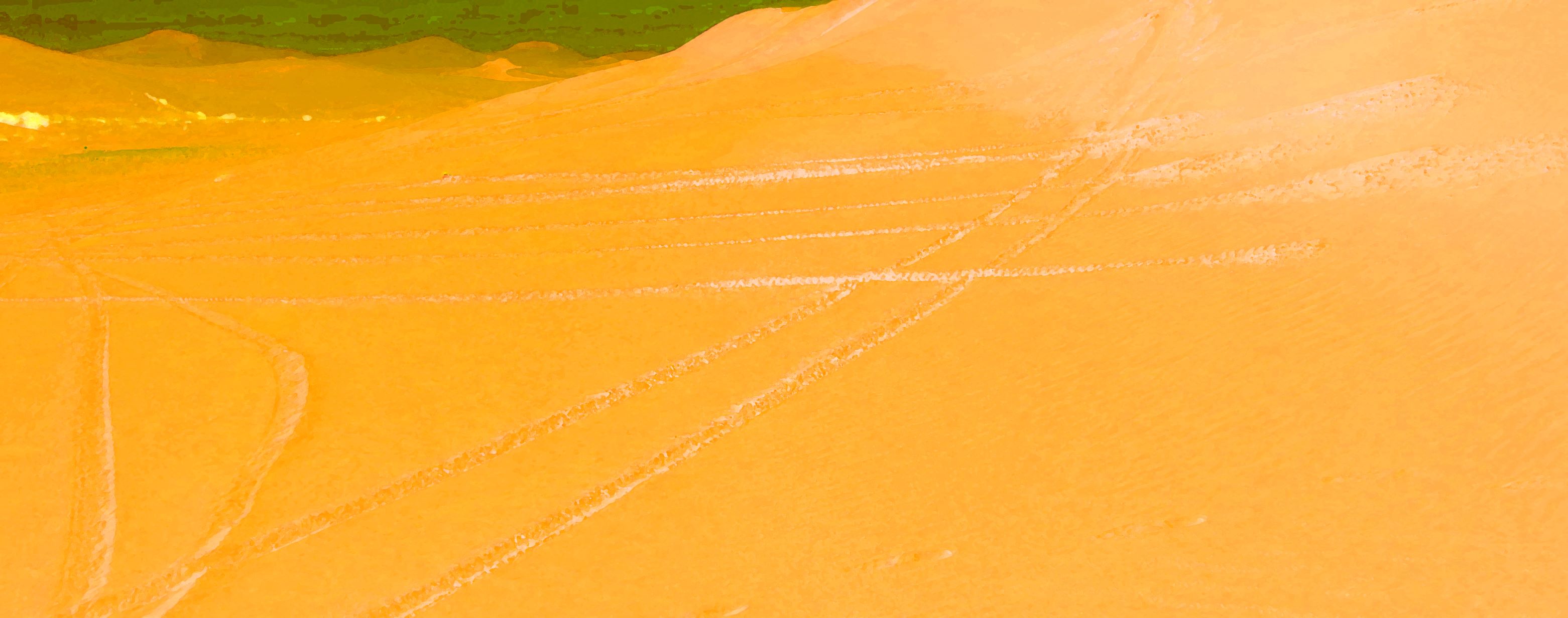 "Between the Lines" presents a glimpse into the nature of human relationships. A single human relationship full of inherent insecurities and daunting in its unpredictability is being observed, deconstructed and documented by the artist. A parallel is drawn between human encounters and partnerships and in a broader sense the existence itself. Translated into minimalist form these very personal interactions are presented through a series of patterns left in the desert sand. The marks are by their very nature only temporary in the environment prone to constant change. Over time the desert surface will leave no trace, erasing all marks.